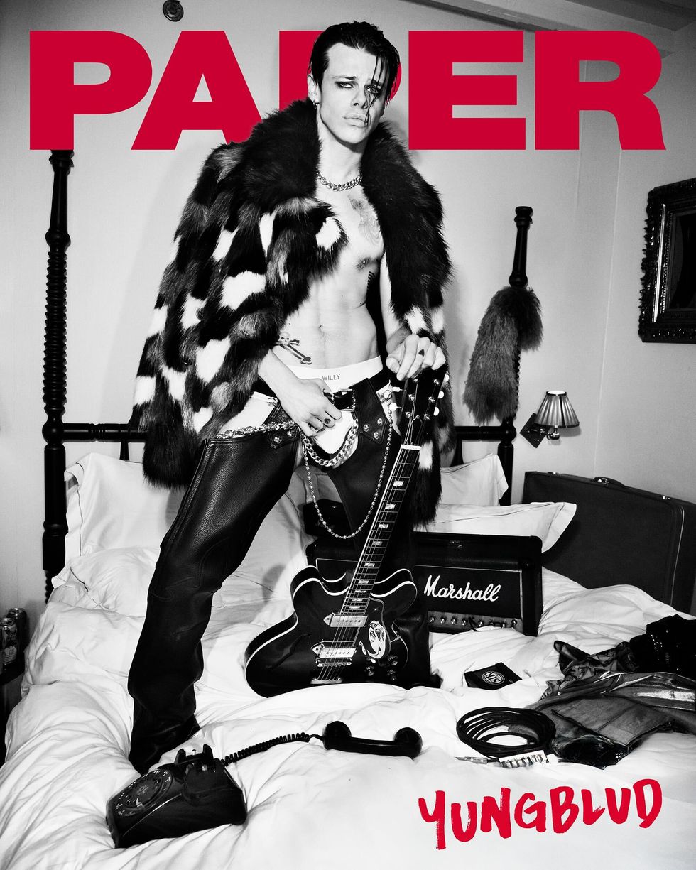 Nevertheless, there was always sincerity to Yungblud, which was previously hidden under layers of eyeliner and drugstore hair dye. It became more apparent last year with the launch of BludFest, his festival in the UK city Milton Keynes. He described it as a “physical world” not just for himself and his fanbase, but for anyone curious enough to step inside. Committed to accessibility, he insisted on fair pricing, making the festival affordable for working-class fans like himself. This move earned him an unexpected kinship with personal hero and fellow fair-pricing advocate, Smashing Pumpkins frontman Billy Corgan. “He’s everything I admire in a musician: he knows who he is and understands that many people have preceded him to lay the groundwork for what you might call the modern music business,” he tells PAPER. “He’s super talented, but not lost in it like so many, which is why I’m so bullish on him having the brightest of futures.”