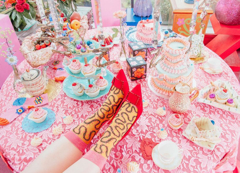 During this whole thing, I put together the Zandra Rhodes foundation and we've been cataloging 100 chests of clothes. That's a sideline between doing Happy Socks, IKEA, and anything else that we've been coming across. So, I've been trying to revamp my life and redesigning my bedroom, so it's going to be the most magical boudoir. I don't want to say that it's yet going to be rainbow. I haven't decided. But it's going to have a magical Sapphire bed in it. Maybe I'm just going to dance around in my Happy Socks. All that has been able to take place because I've been in one place re-thinking it.