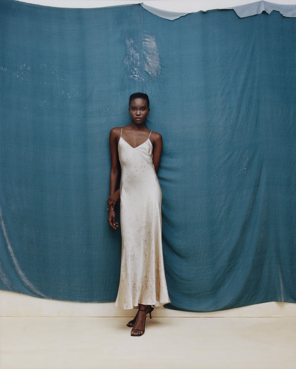 Completing the range, Madrid-bred visionary Alejandra Alonso Rojas designed a tie-dye dress with a V-neck and spaghetti straps using Join Life viscose, a wood-sourced fiber from more sustainably-managed forests.