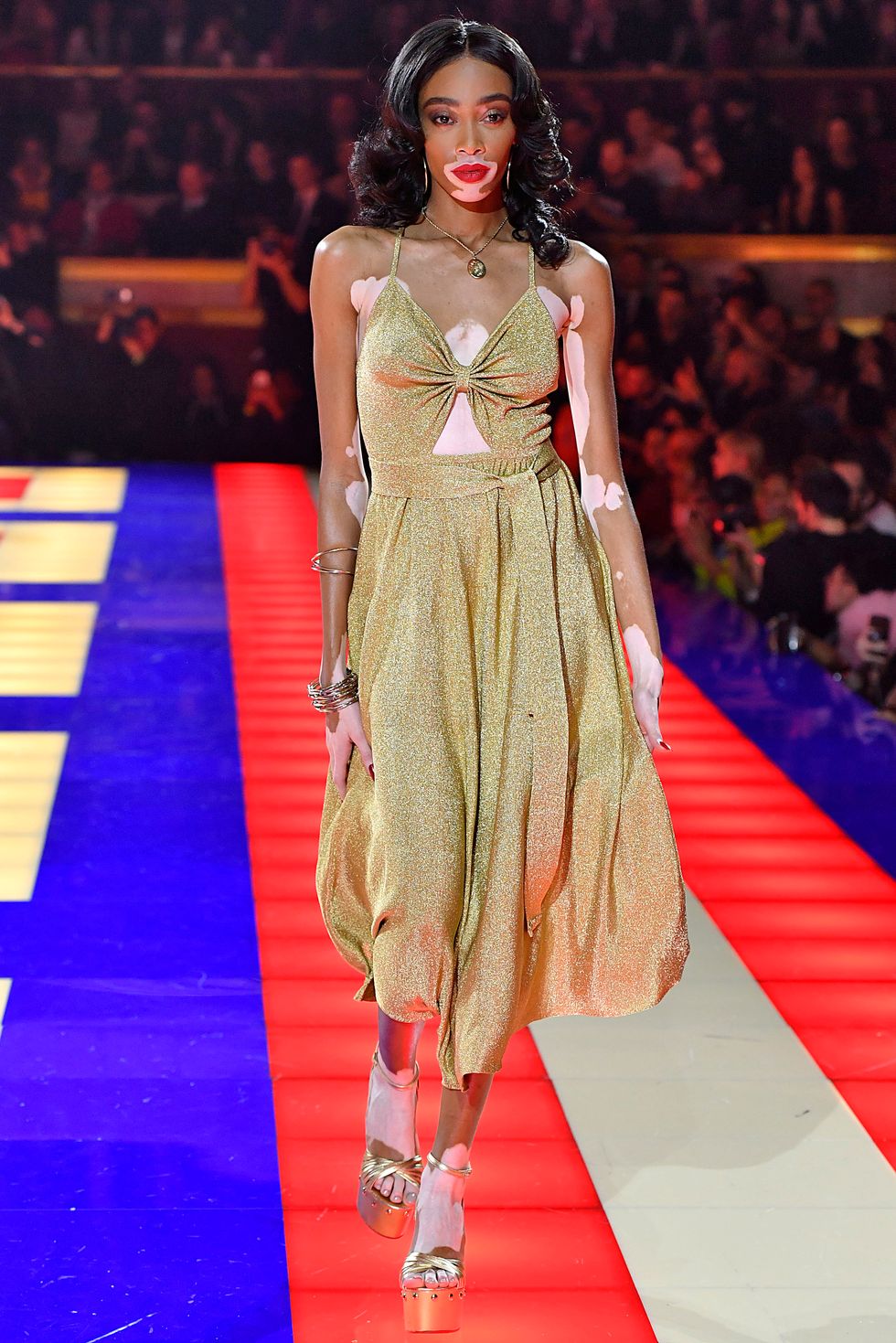 Zendaya and her stylist Law Roach worked on the show together, attempting to "echo the seminal 1973 "Battle of Versailles," where American designers won major accolades from Paris for the first time." And so, like designer Steven Burrows, they made sure all the models that walked the runway were a diverse group of black women of all shapes, shades, ages, genders, and sizes. Other than Grace Jones, the show also included trans model Leyna Bloom, Canadian model and vitiligo spokesperson Winnie Harlow, and many more.