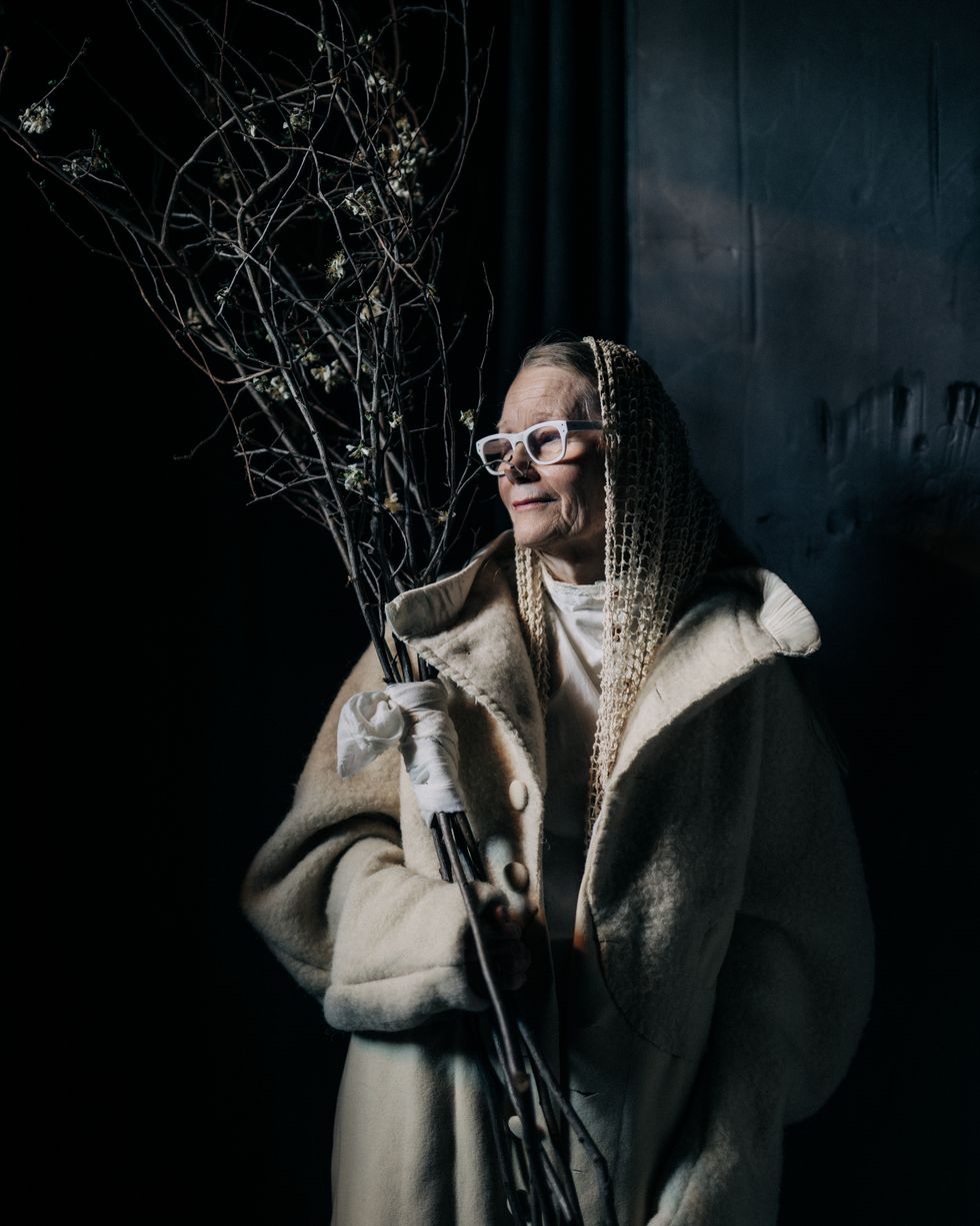 This process repeated itself throughout the afternoon of the day’s event, where various guests chimed in to share their connection to the brand and Whalen herself. These included a stylist who sourced her looks for an upcoming magazine shoot featuring Anna Delvey (who walked in the show), as well as Whalen’s industry veteran mentor Judy Collinson (a former fashion executive by way of Barneys, Dior and Burberry), swathed in rich layers of quilted, felt wool blankets and a bonnet to match. “She’s doing something that’s so beautiful and interesting. It’s truly art. From the moment we met, we were in sync,” Collinson explained.