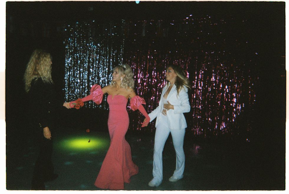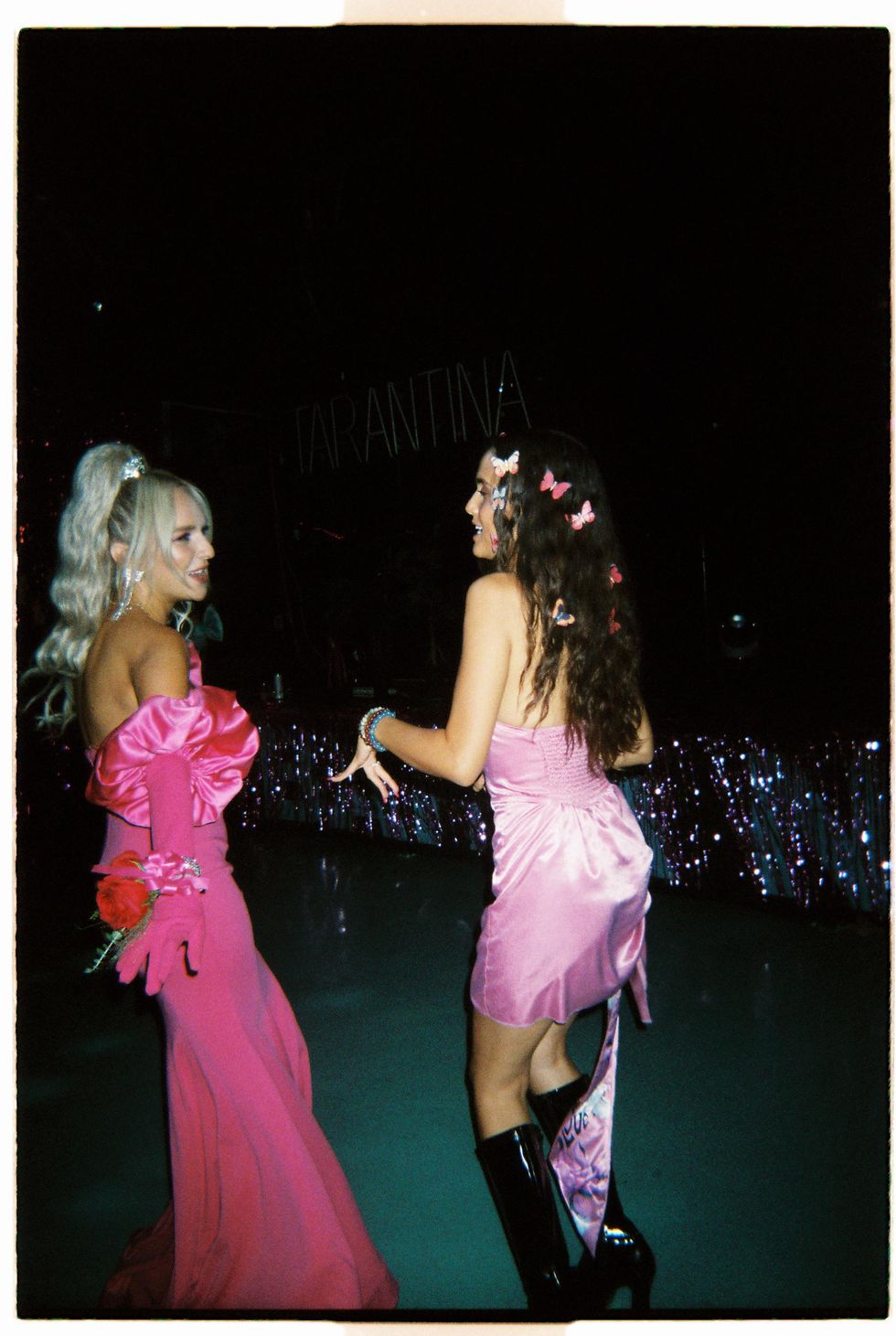 Given the fabulous guest list though, it's no wonder Zolita wanted to throw one of the most stylish parties we've ever seen, transporting the music video's prom scene to a neon-lit LA bar she decorated with foil curtains, as well as an adorable backdrop that wouldn't be out of place at an actual high school dance.